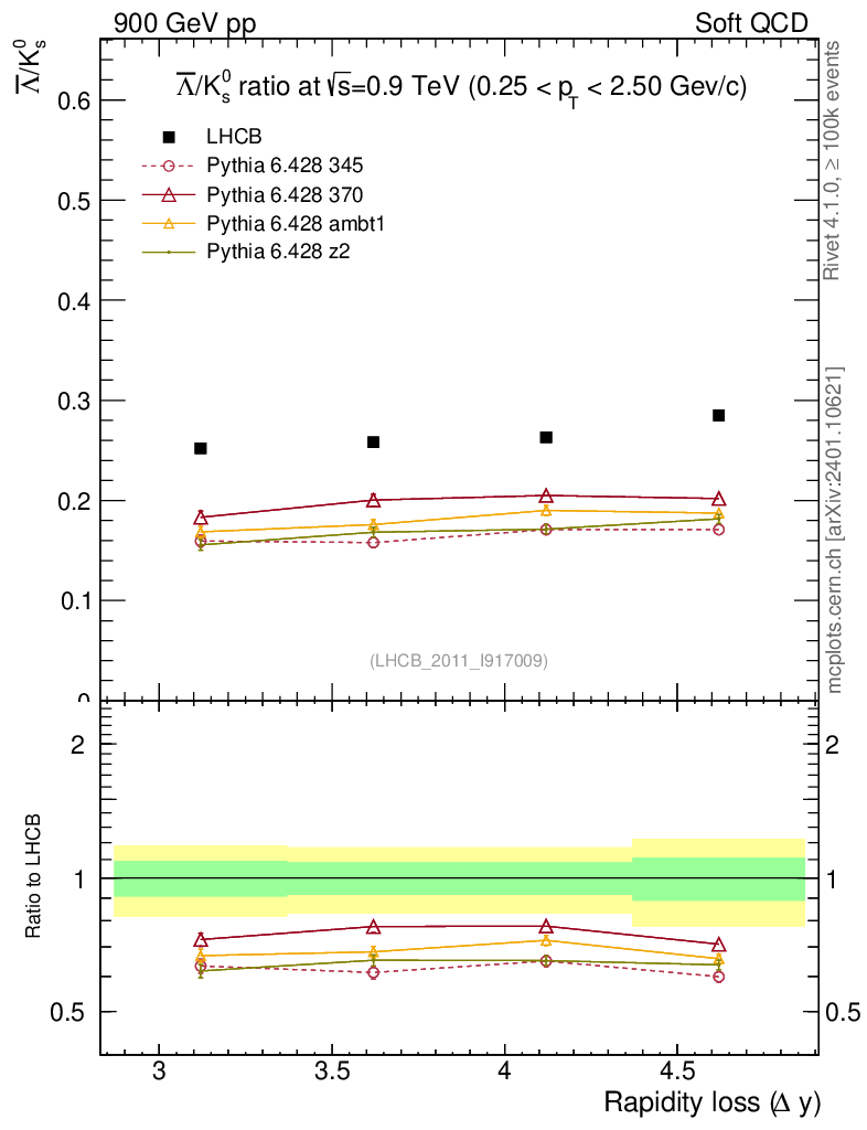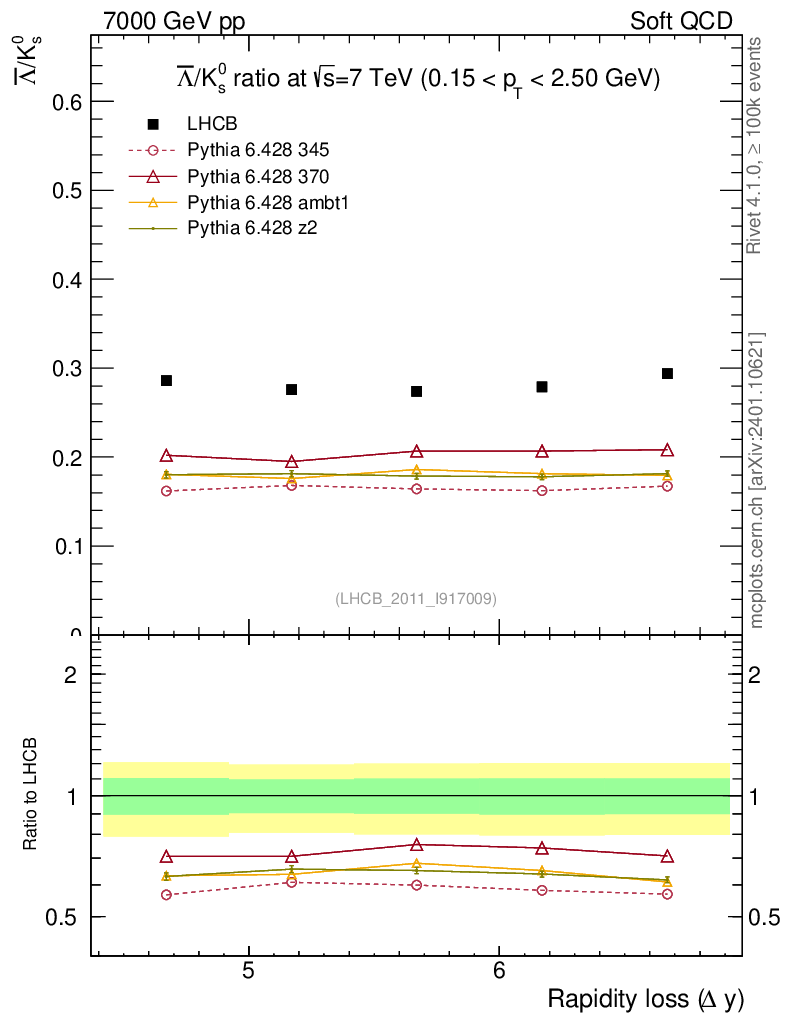 Soft QCD (inelastic) : Identified Particles : Ratios : Λbar/K0S vs |Δy|