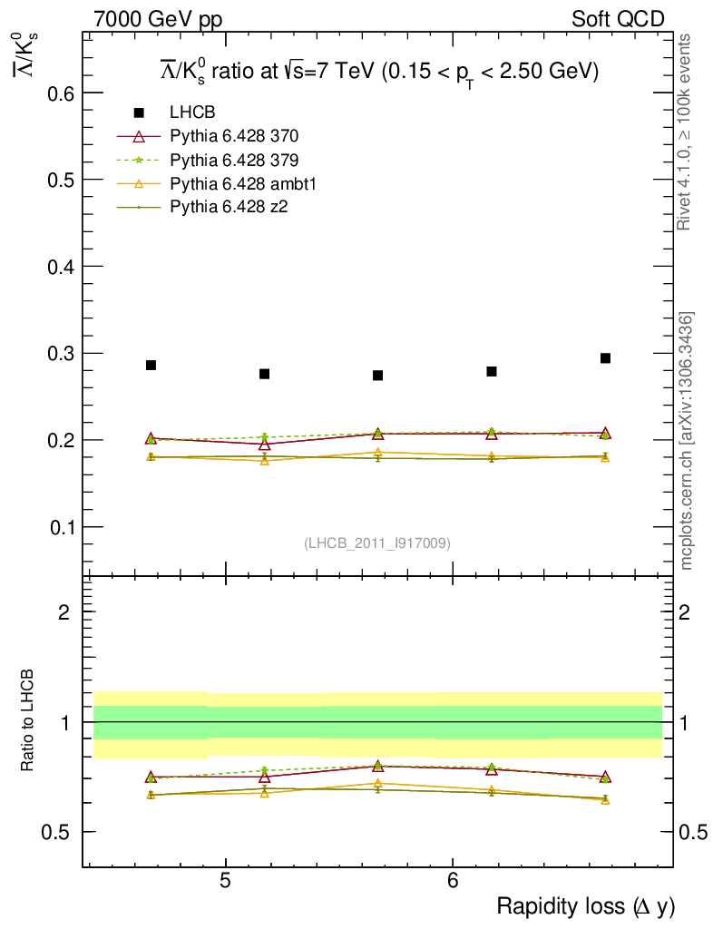Soft QCD (inelastic) : Identified Particles : Ratios : Λbar/K0S vs |Δy|