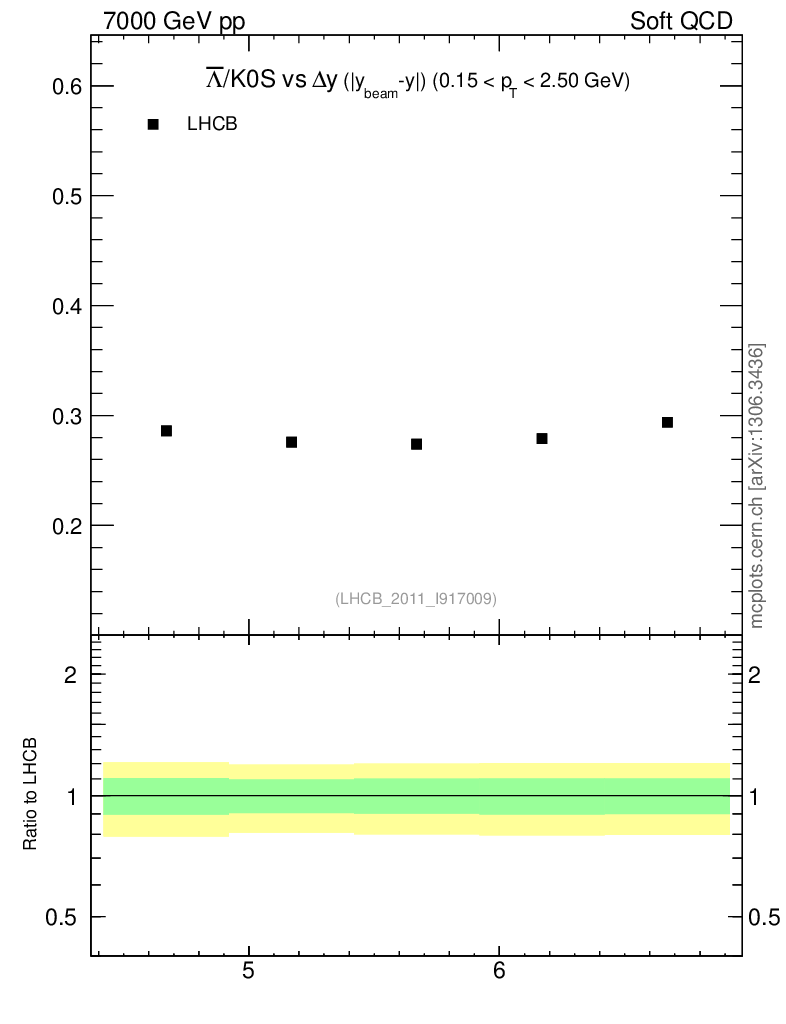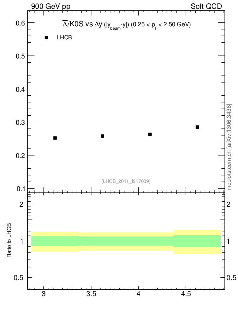 Soft QCD (inelastic) : Identified Particles : Ratios : Λbar/K0S vs |Δy|