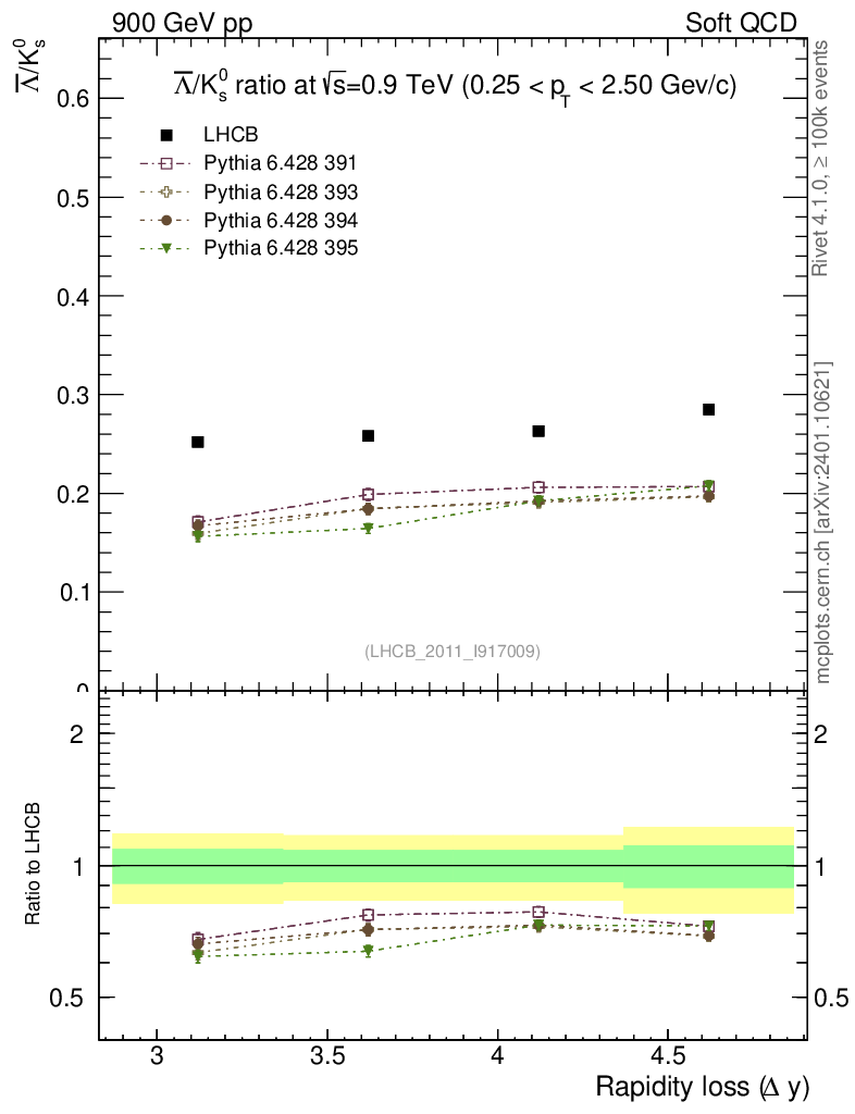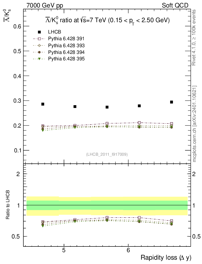Soft QCD (inelastic) : Identified Particles : Ratios : Λbar/K0S vs |Δy|