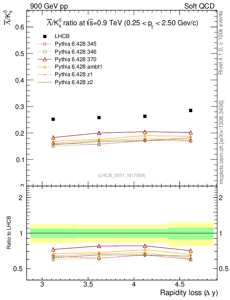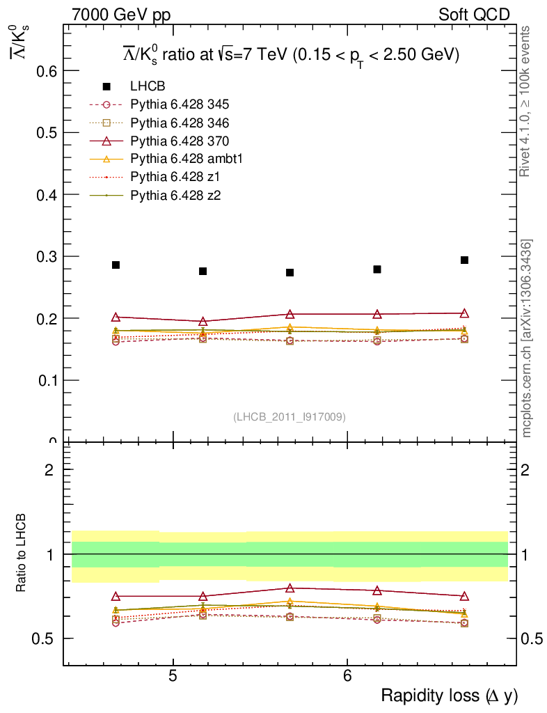 Soft QCD (inelastic) : Identified Particles : Ratios : Λbar/K0S vs |Δy|