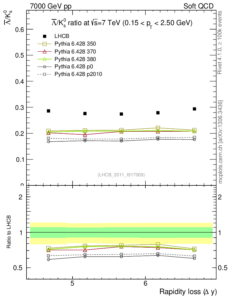 Soft QCD (inelastic) : Identified Particles : Ratios : Λbar/K0S vs |Δy|