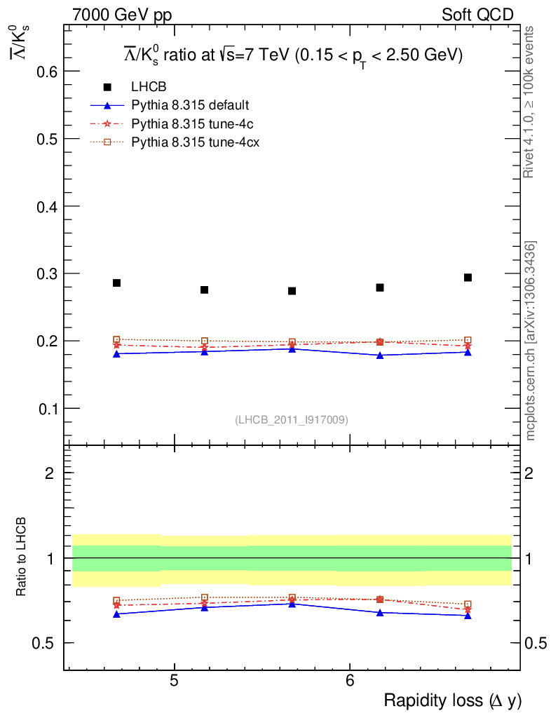 Soft QCD (inelastic) : Identified Particles : Ratios : Λbar/K0S vs |Δy|