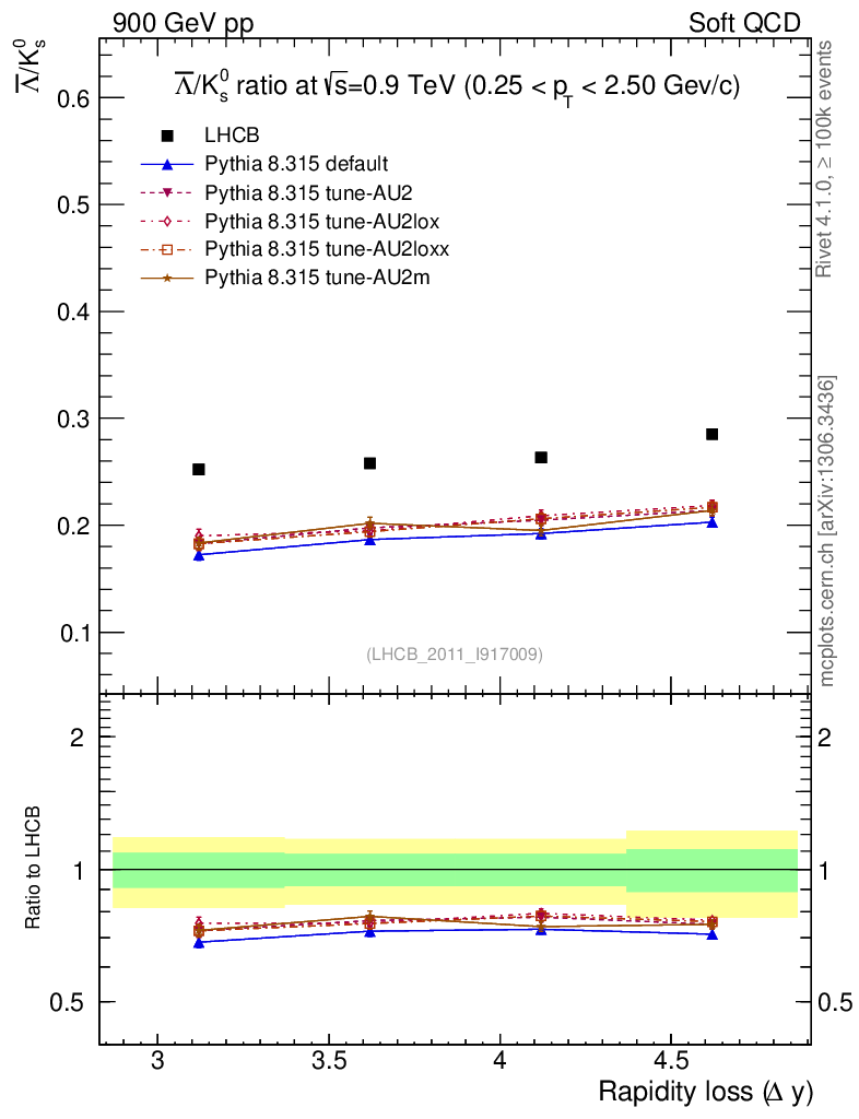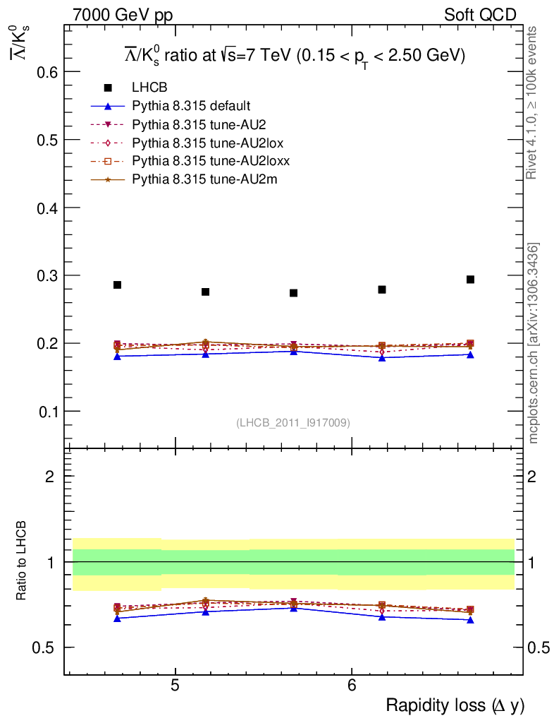 Soft QCD (inelastic) : Identified Particles : Ratios : Λbar/K0S vs |Δy|