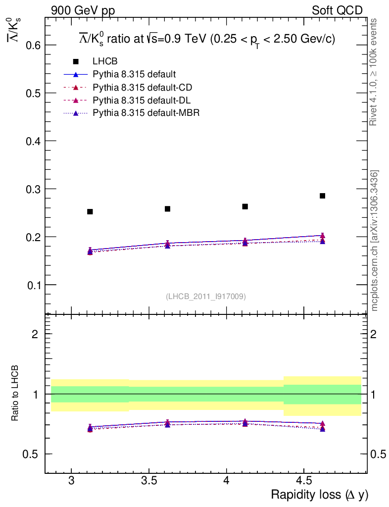 Soft QCD (inelastic) : Identified Particles : Ratios : Λbar/K0S vs |Δy|