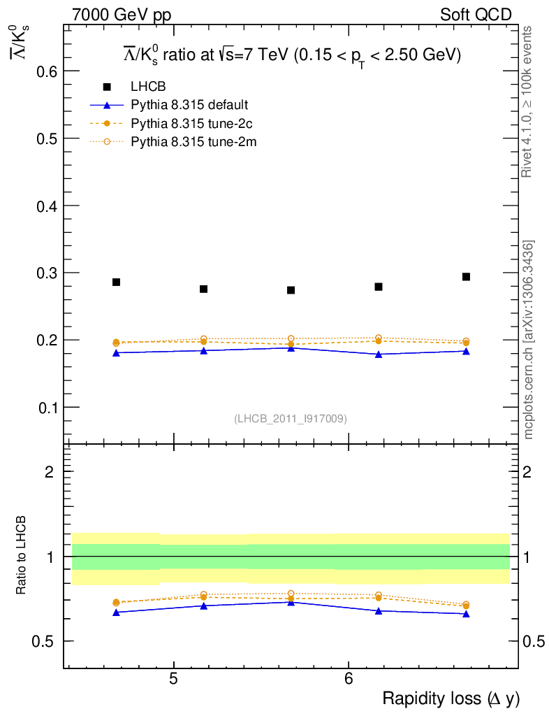 Soft QCD (inelastic) : Identified Particles : Ratios : Λbar/K0S vs |Δy|