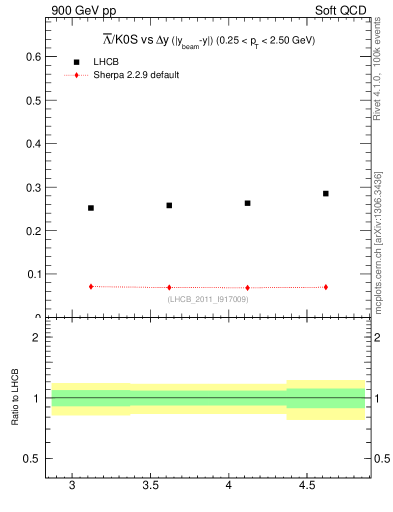 Plot of Lbar2K0S_yloss in 900 GeV pp collisions