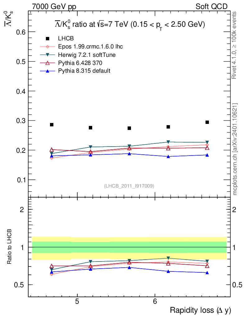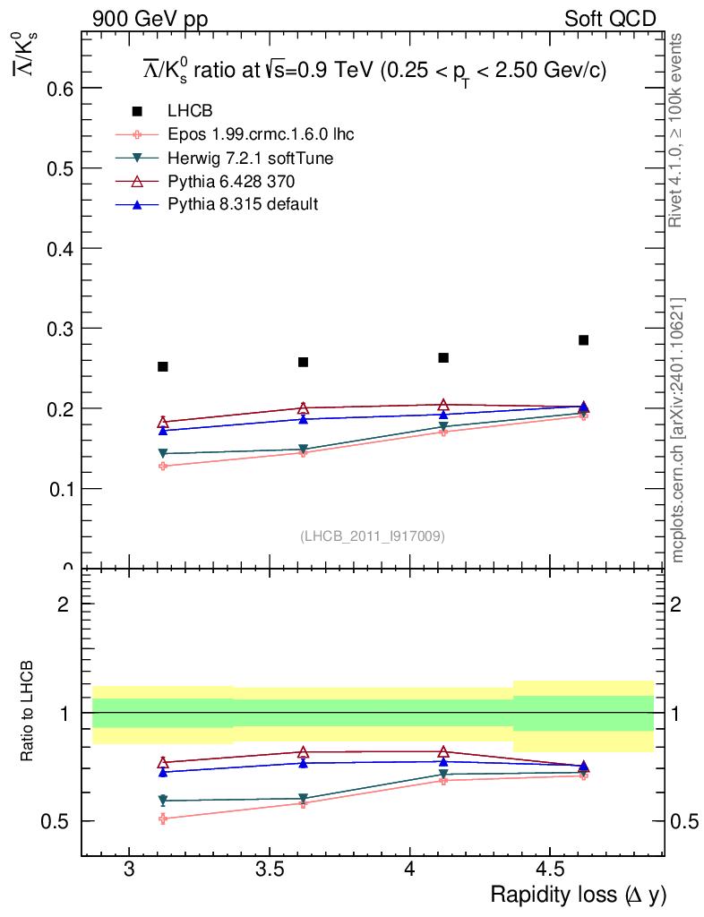 Soft QCD (inelastic) : Identified Particles : Ratios : Λbar/K0S vs |Δy|
