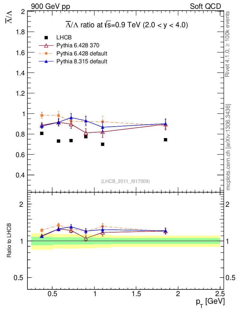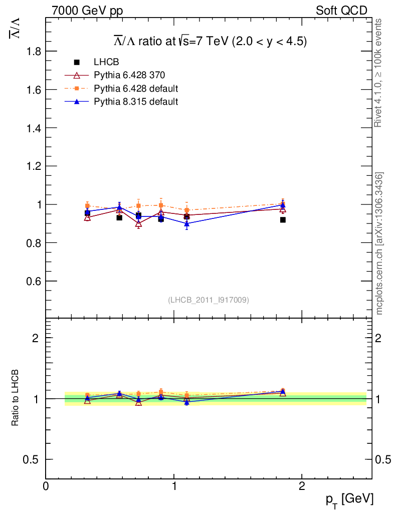 Soft QCD (inelastic) : Identified Particles : Ratios : Λbar/Λ vs pT