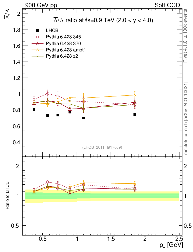 Soft QCD (inelastic) : Identified Particles : Ratios : Λbar/Λ vs pT