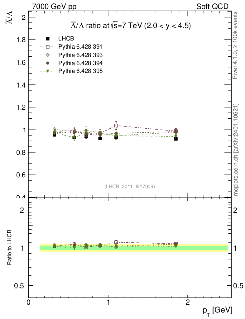 Soft QCD (inelastic) : Identified Particles : Ratios : Λbar/Λ vs pT
