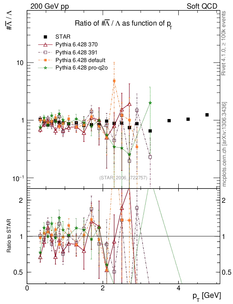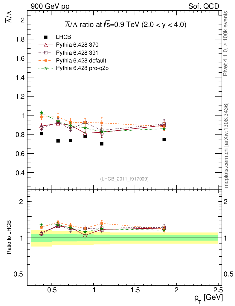 Soft QCD (inelastic) : Identified Particles : Ratios : Λbar/Λ vs pT
