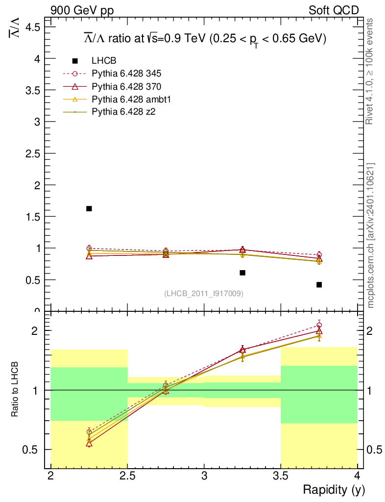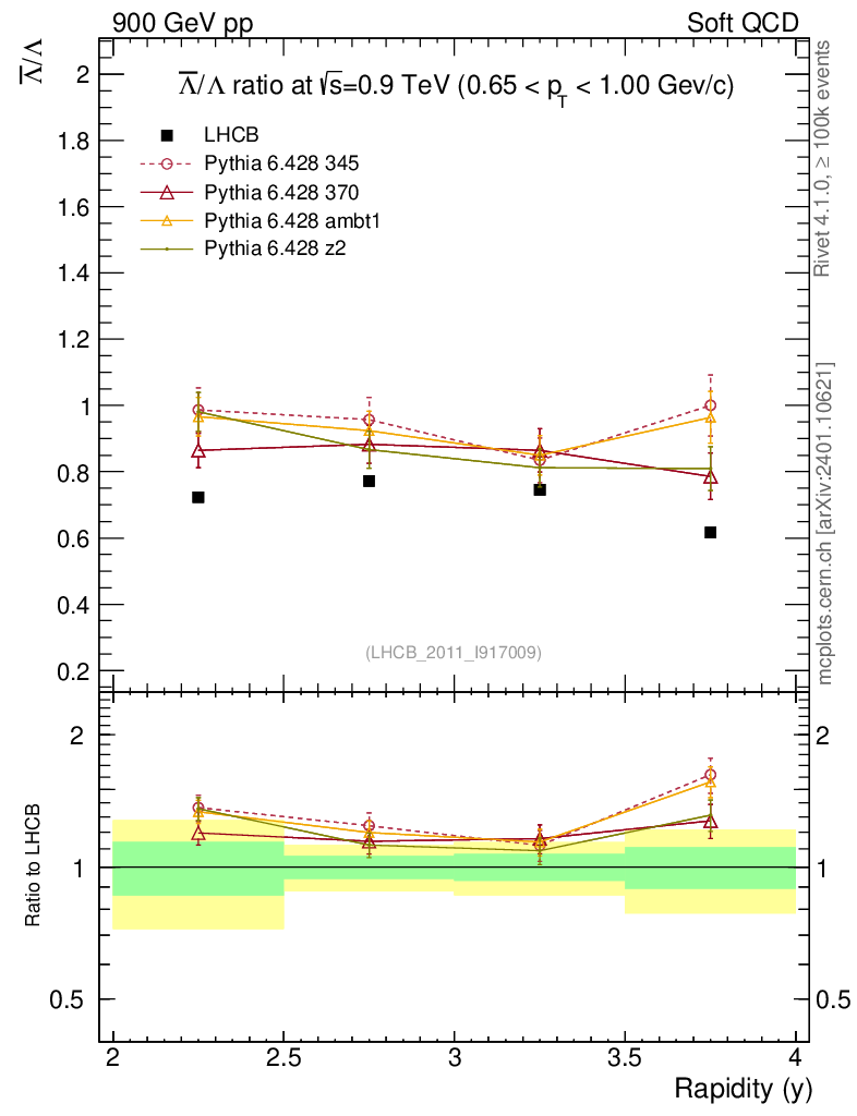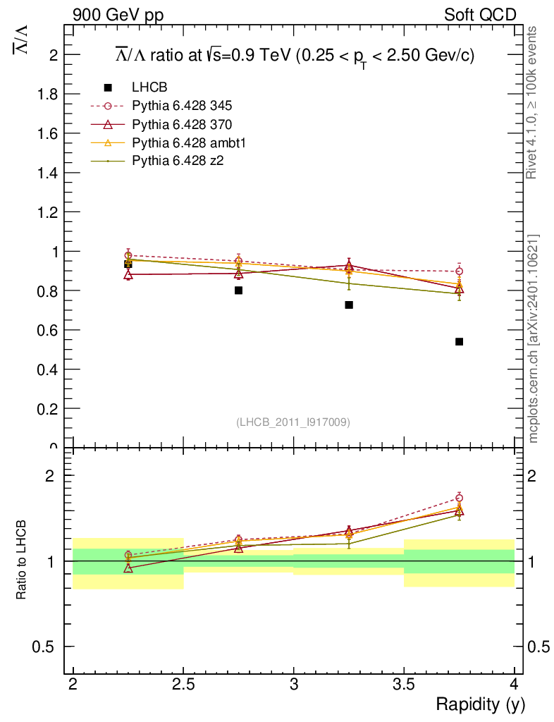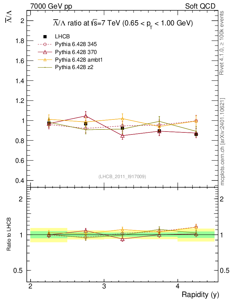 Soft QCD (inelastic) : Identified Particles : Ratios : Λbar/Λ vs |y|