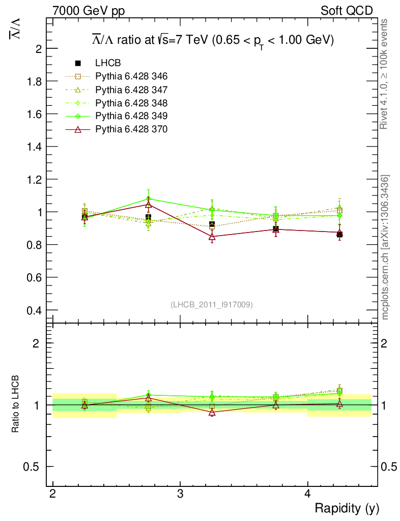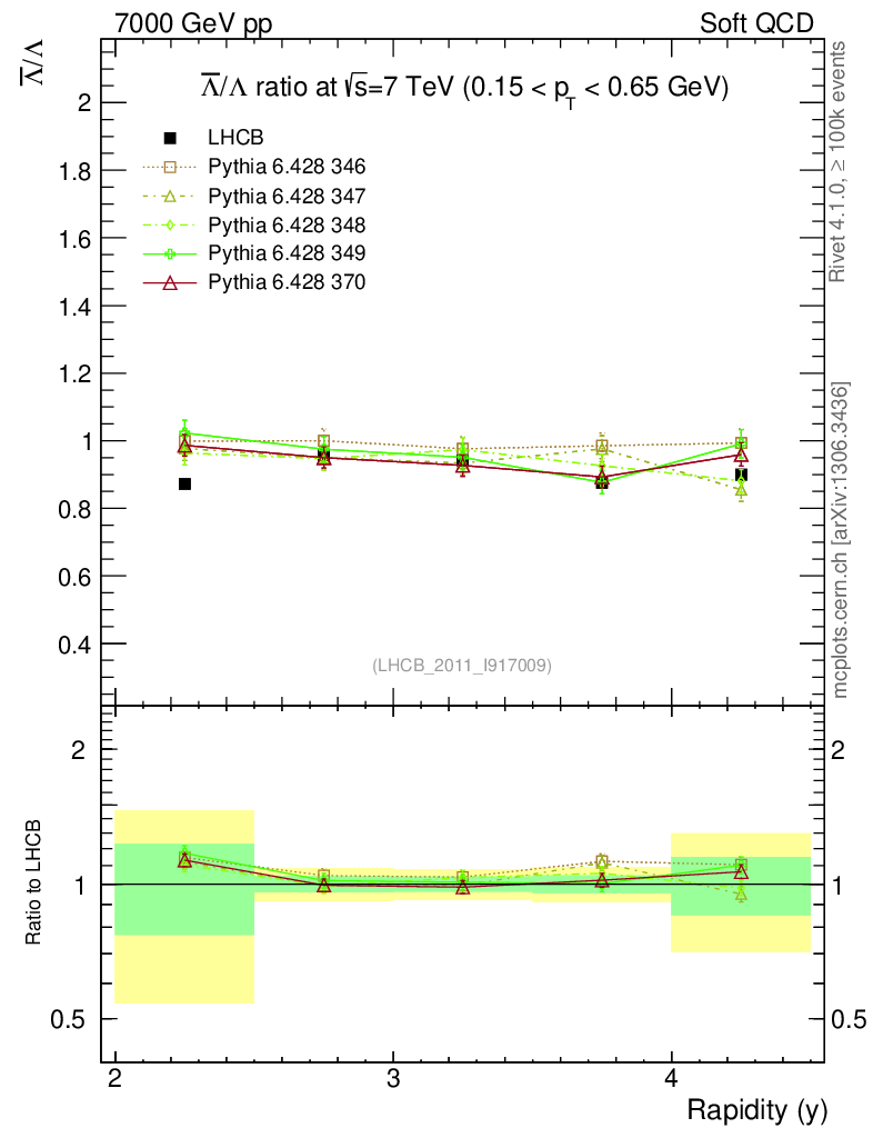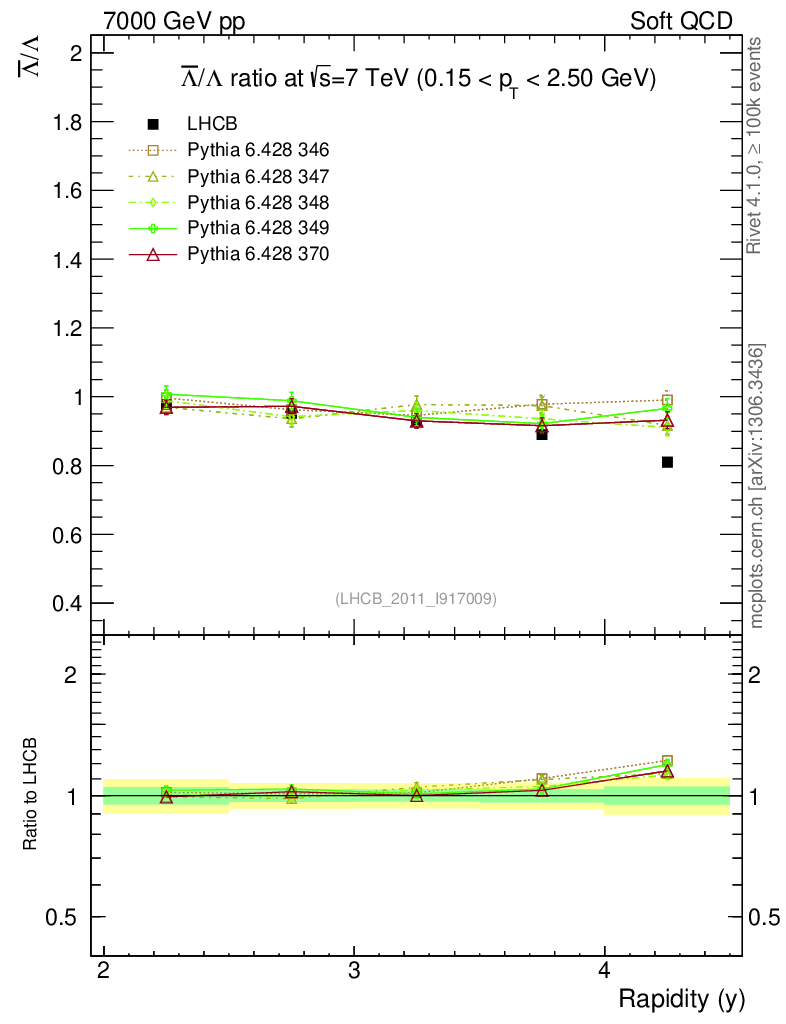 Soft QCD (inelastic) : Identified Particles : Ratios : Λbar/Λ vs |y|