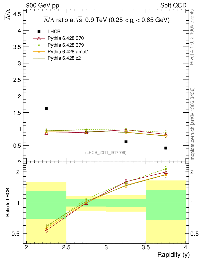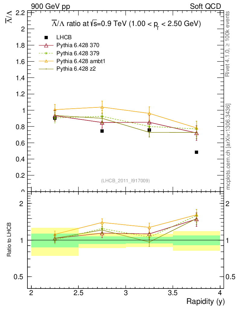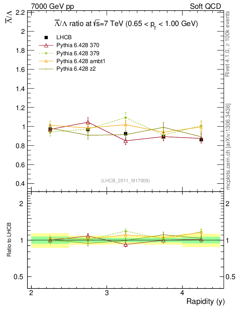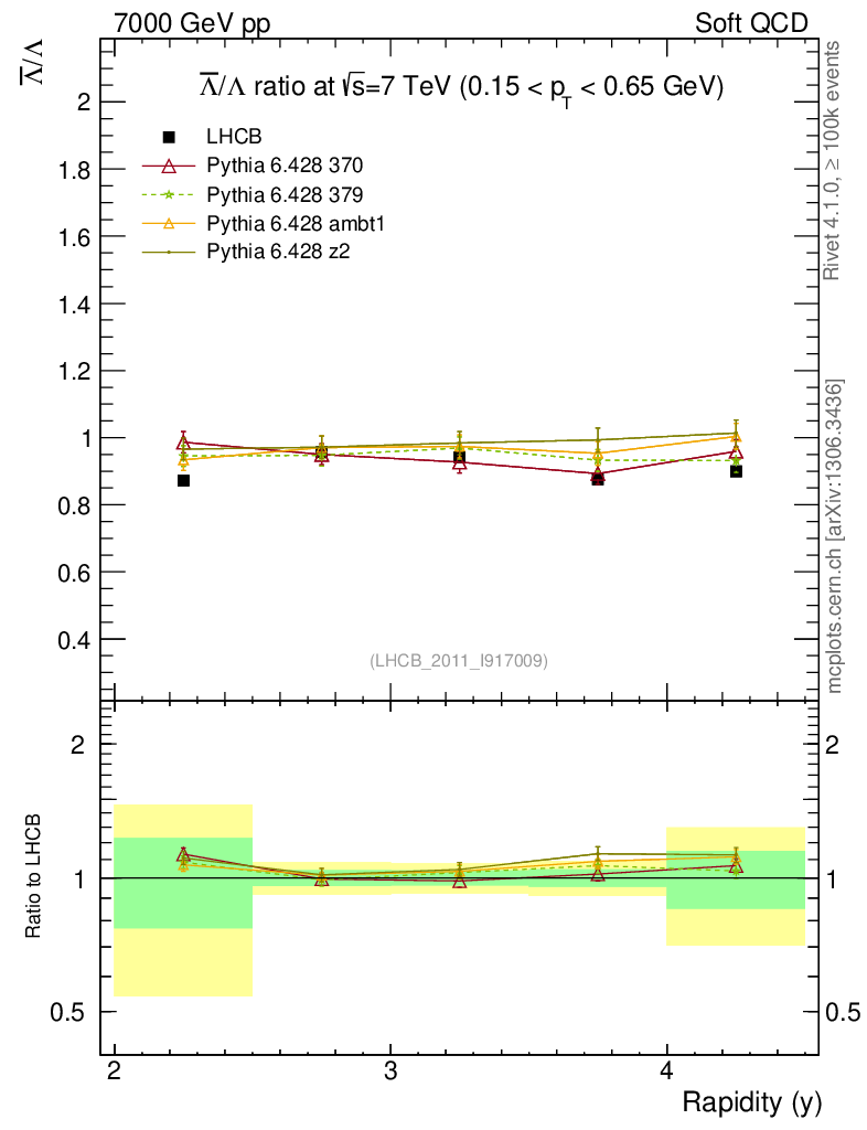 Soft QCD (inelastic) : Identified Particles : Ratios : Λbar/Λ vs |y|