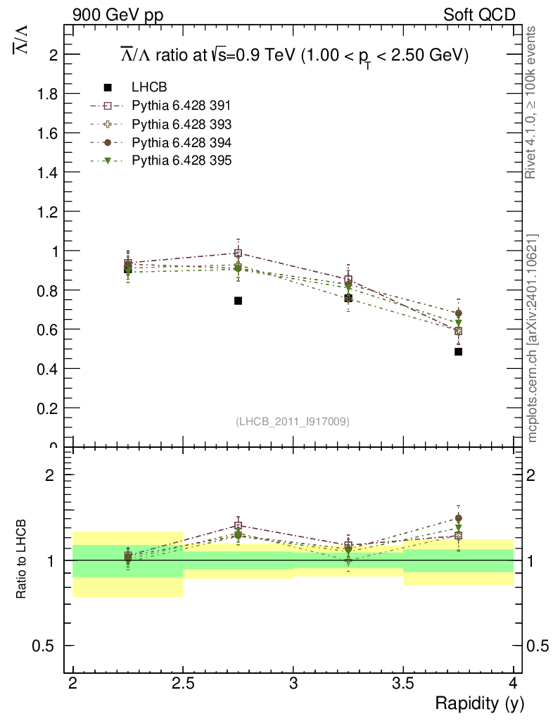 Soft QCD (inelastic) : Identified Particles : Ratios : Λbar/Λ vs |y|
