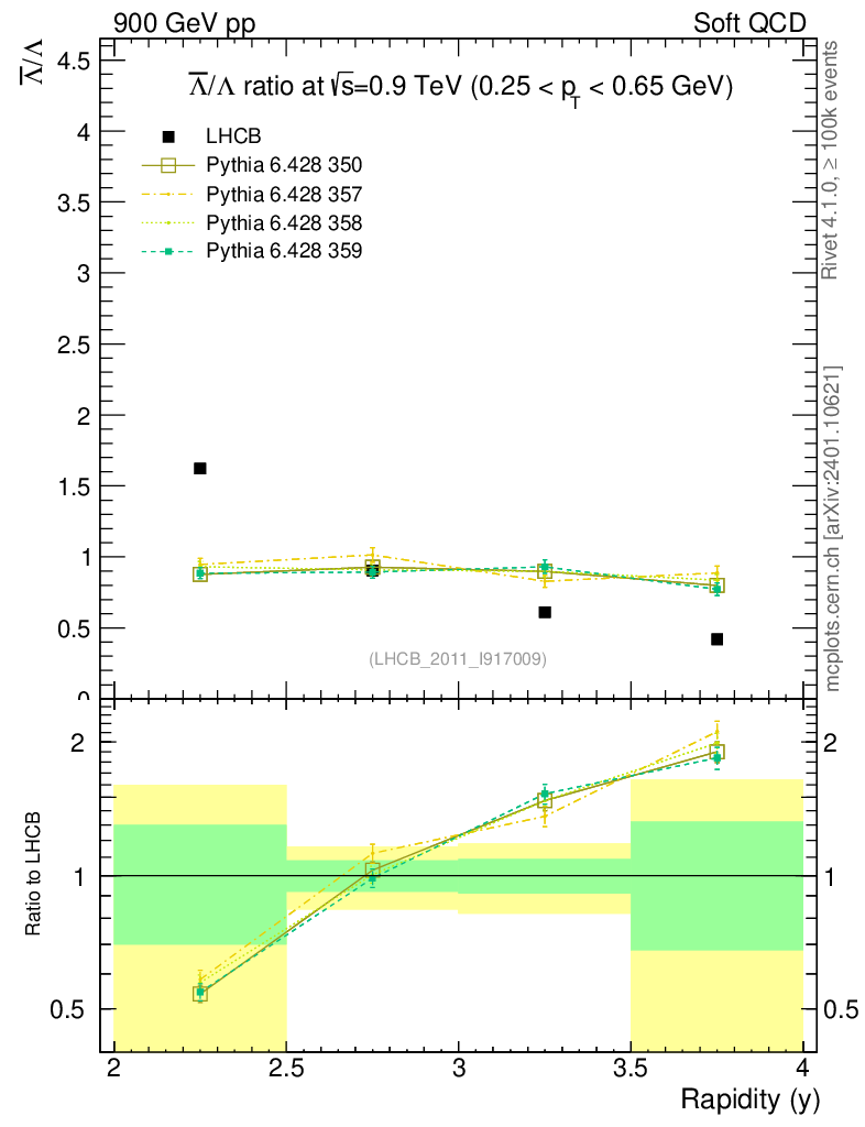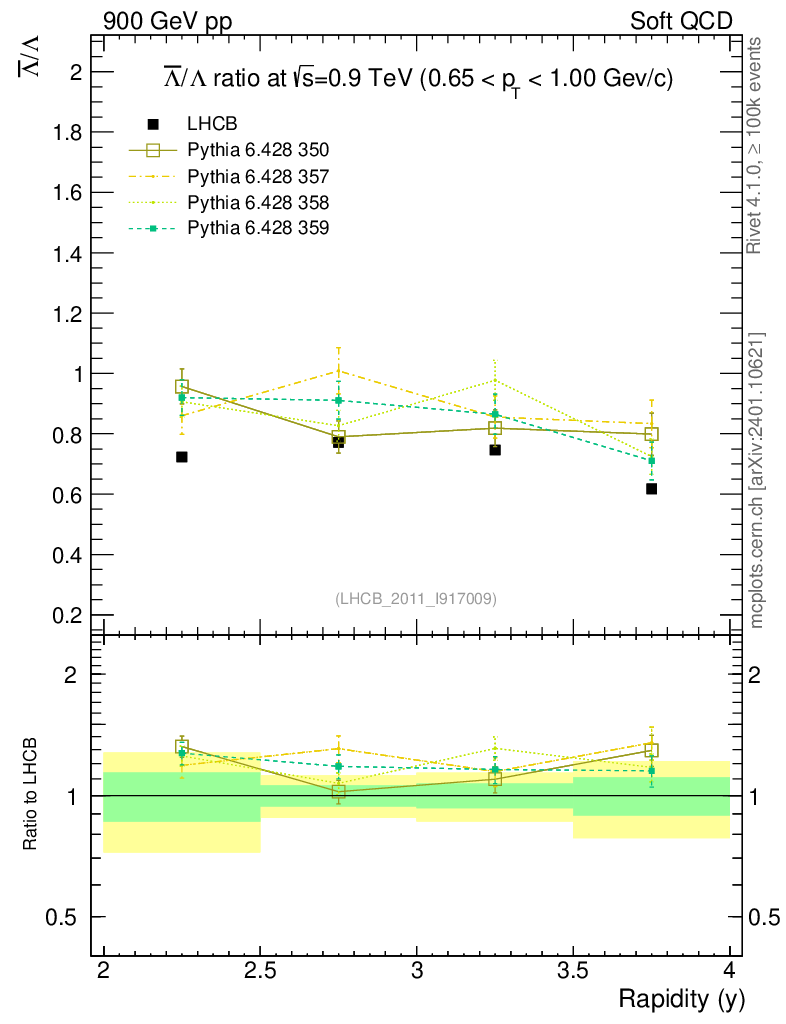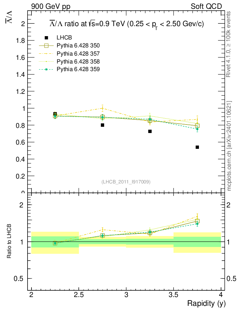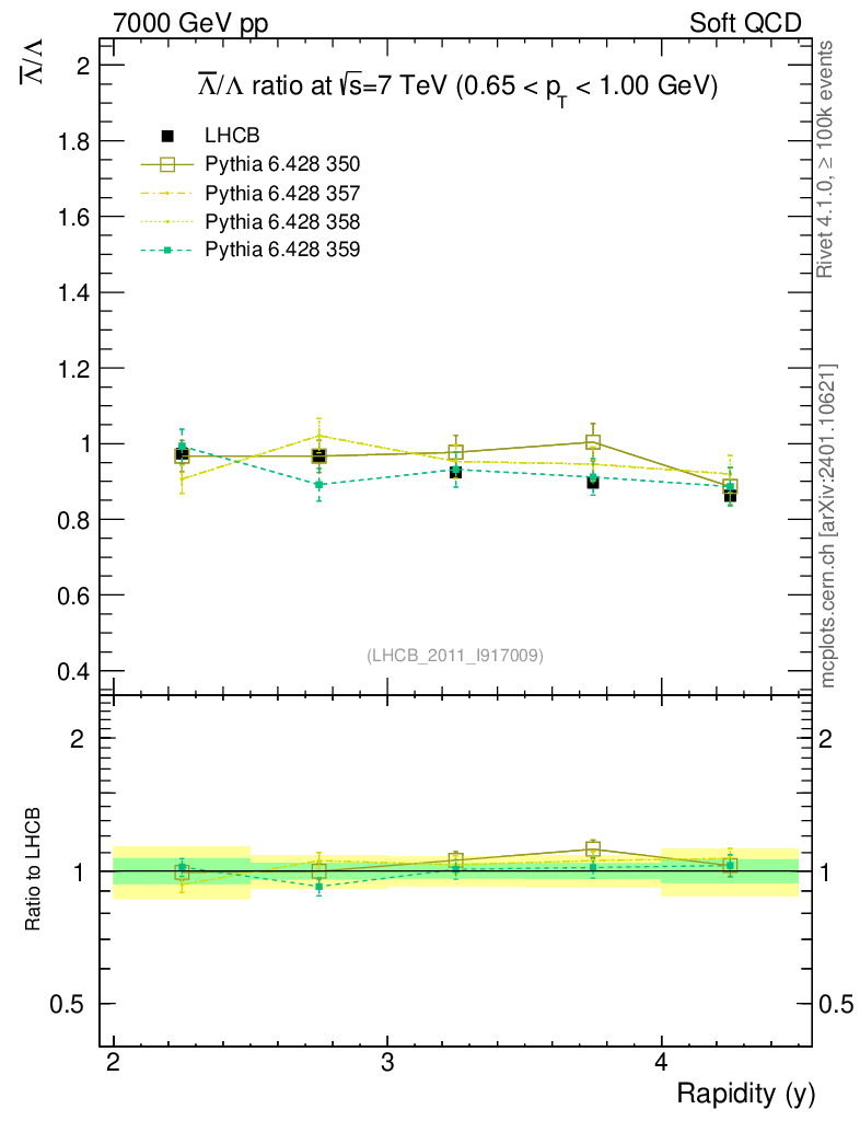 Soft QCD (inelastic) : Identified Particles : Ratios : Λbar/Λ vs |y|