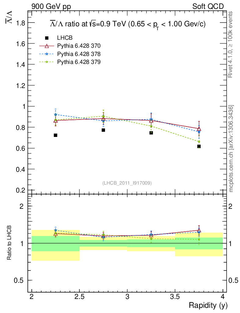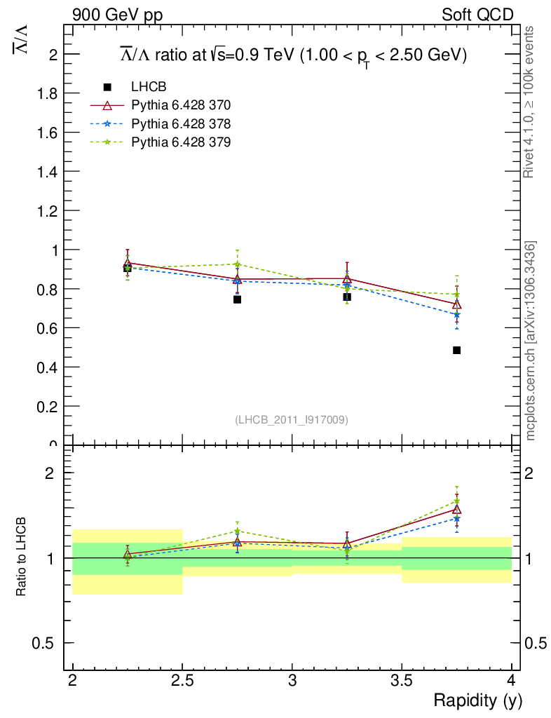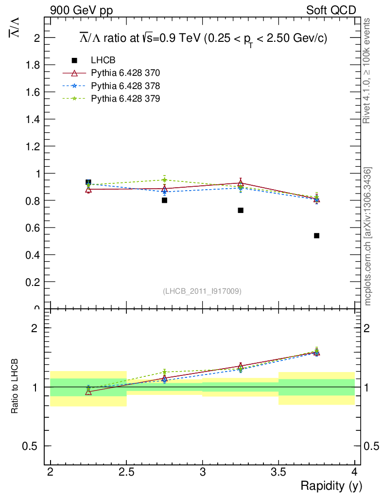 Soft QCD (inelastic) : Identified Particles : Ratios : Λbar/Λ vs |y|