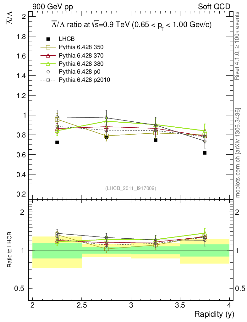 Soft QCD (inelastic) : Identified Particles : Ratios : Λbar/Λ vs |y|