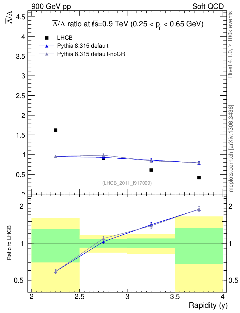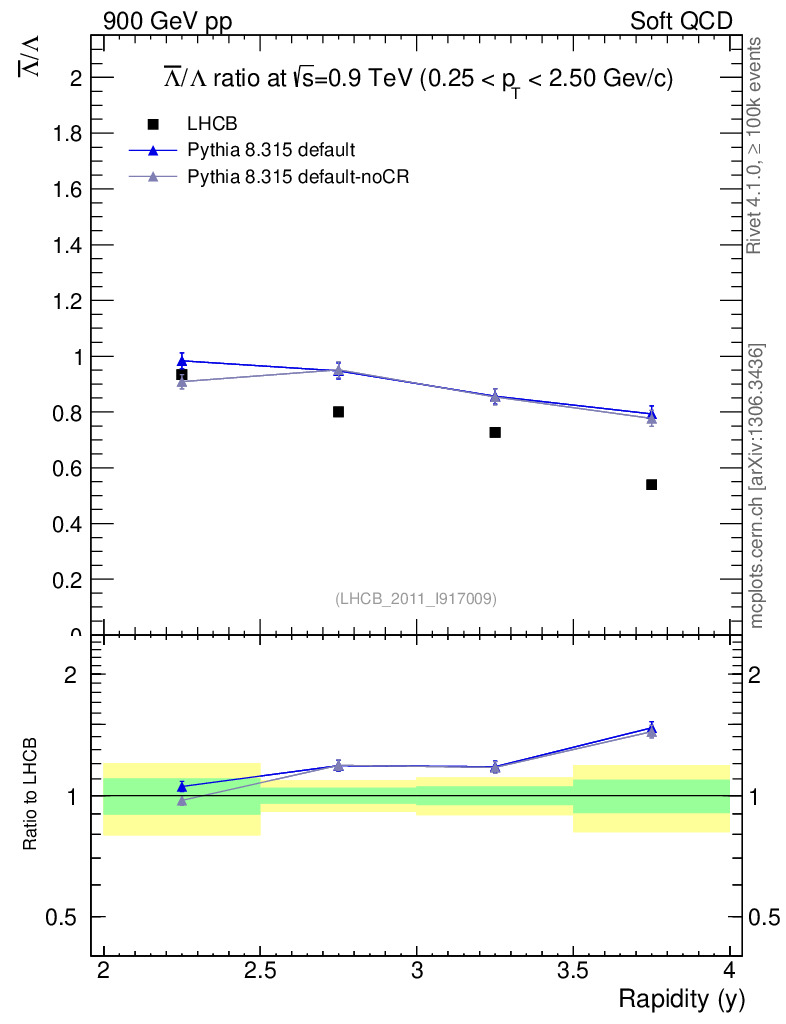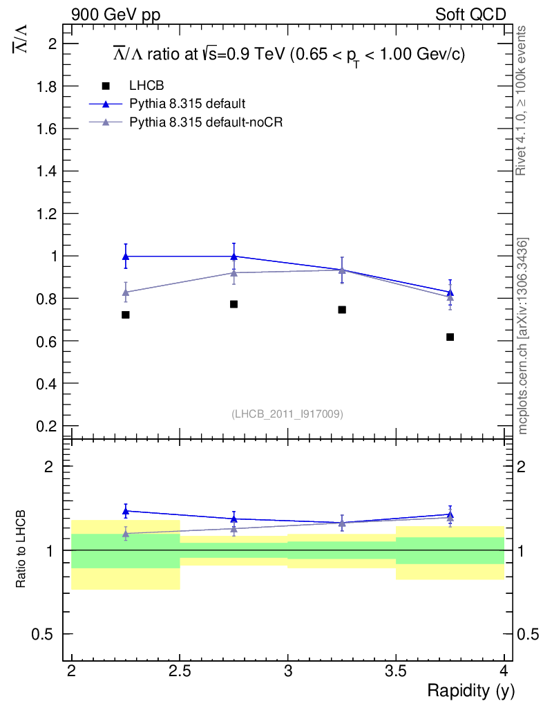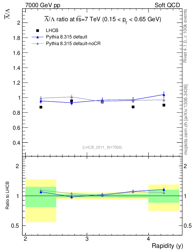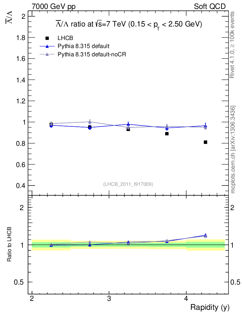 Soft QCD (inelastic) : Identified Particles : Ratios : Λbar/Λ vs |y|