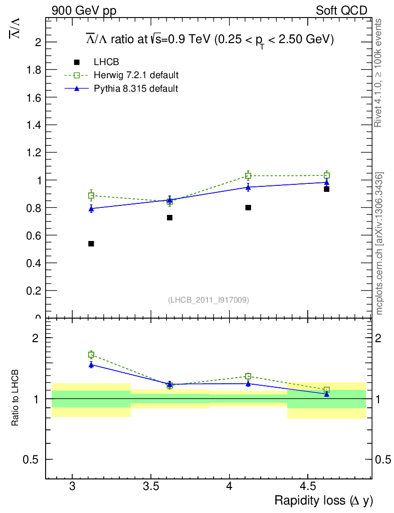 Soft QCD (inelastic) : Identified Particles : Ratios : Λbar/Λ vs |Δy|