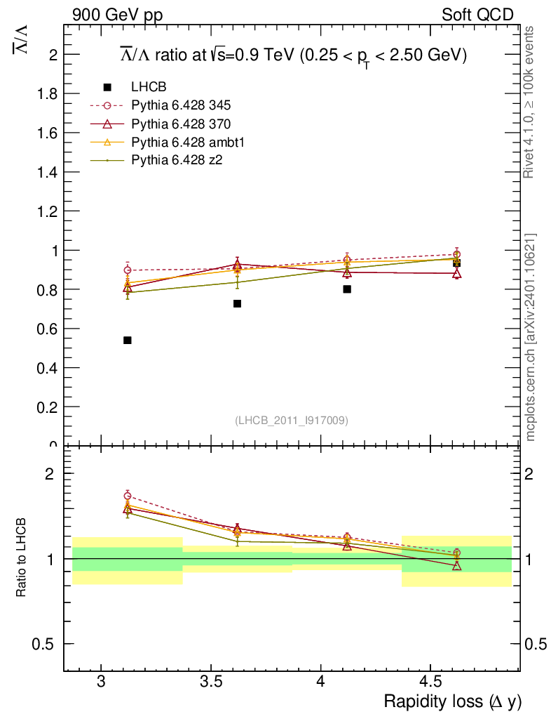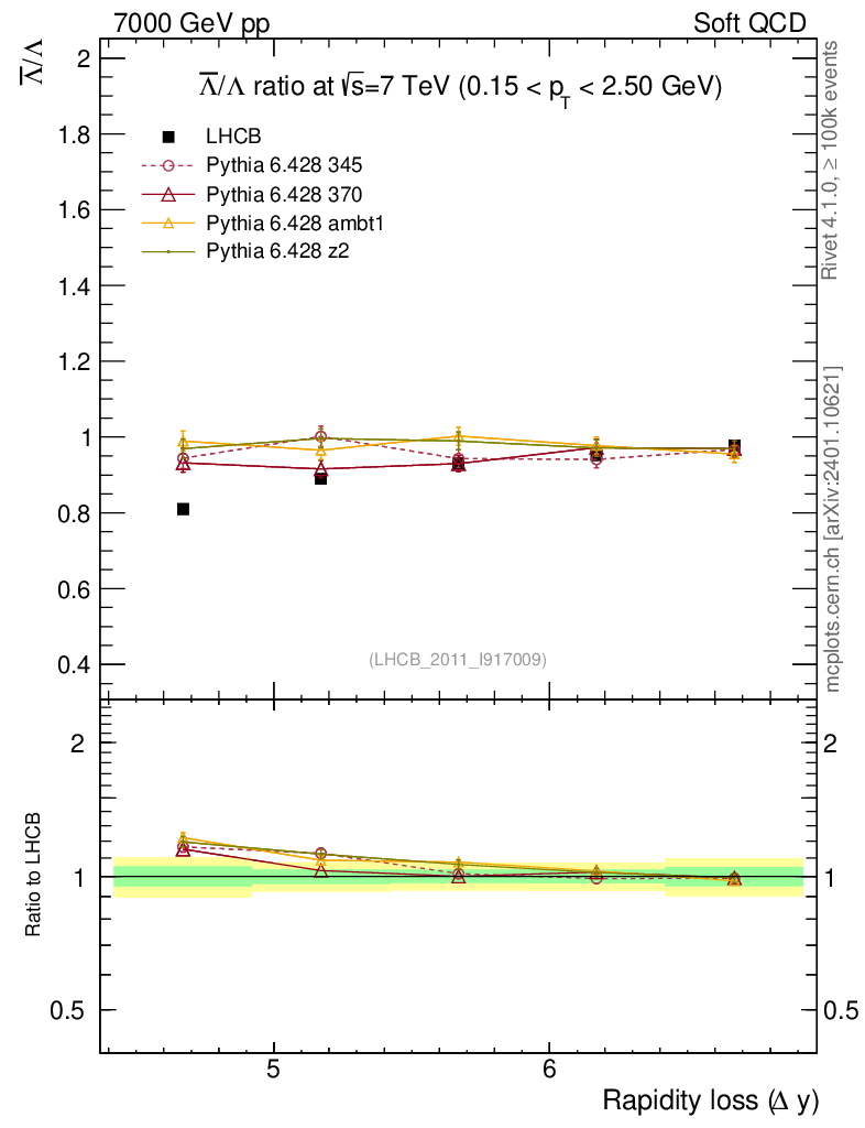 Soft QCD (inelastic) : Identified Particles : Ratios : Λbar/Λ vs |Δy|