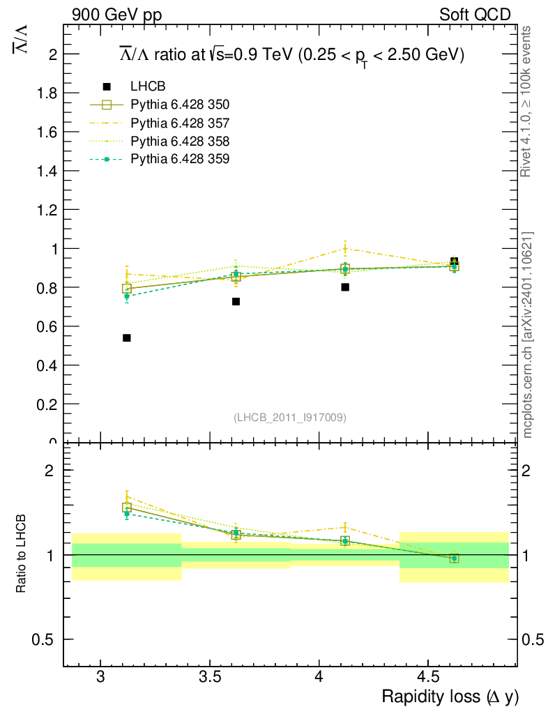 Soft QCD (inelastic) : Identified Particles : Ratios : Λbar/Λ vs |Δy|