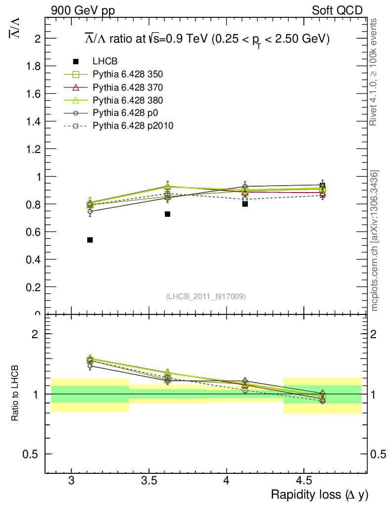 Soft QCD (inelastic) : Identified Particles : Ratios : Λbar/Λ vs |Δy|