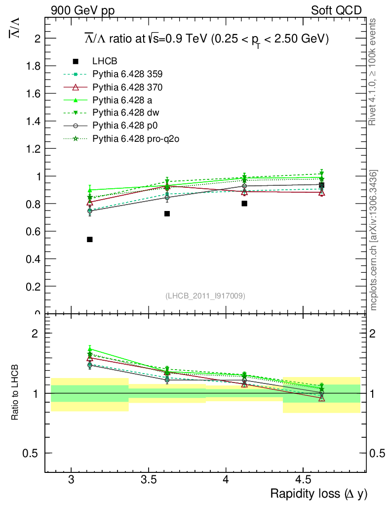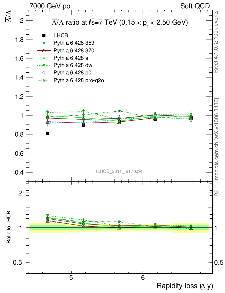 Soft QCD (inelastic) : Identified Particles : Ratios : Λbar/Λ vs |Δy|
