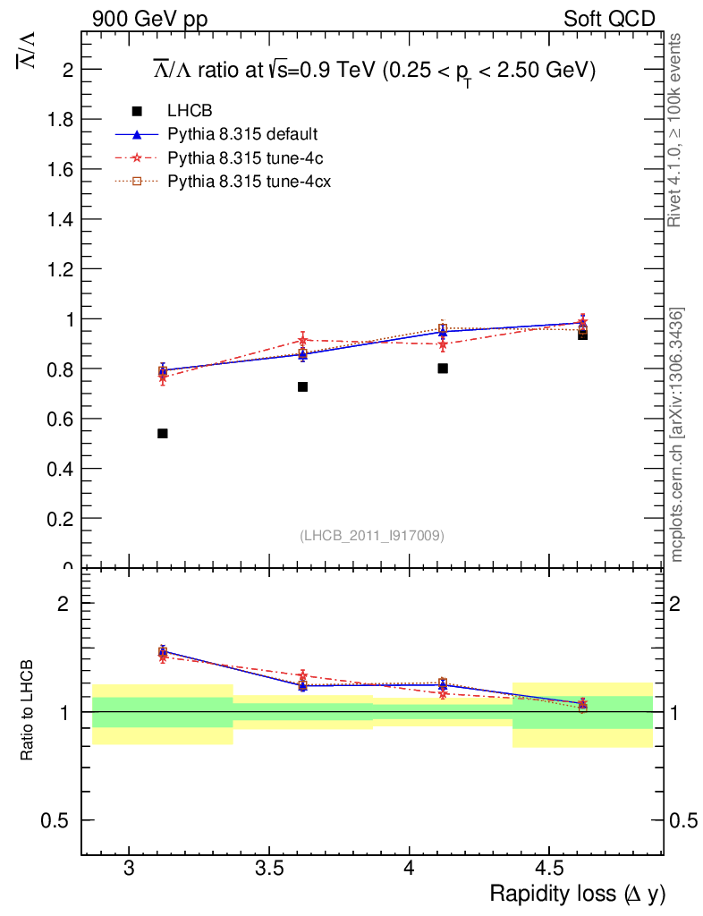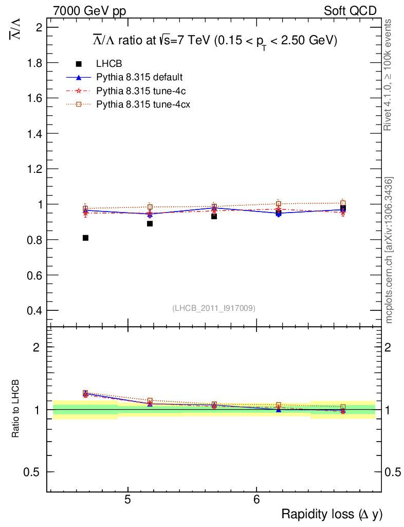Soft QCD (inelastic) : Identified Particles : Ratios : Λbar/Λ vs |Δy|