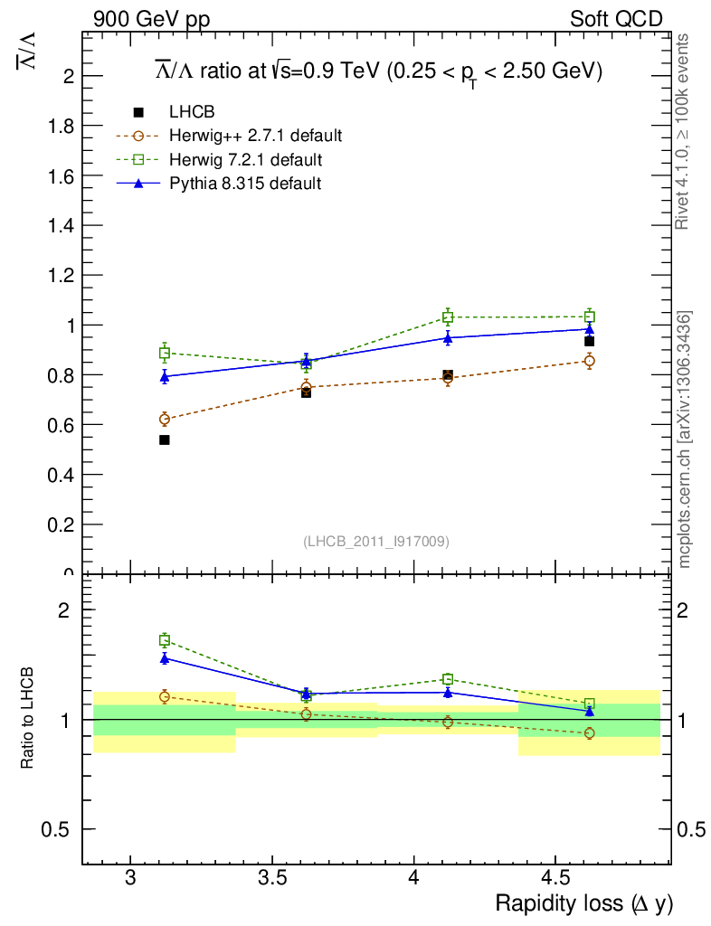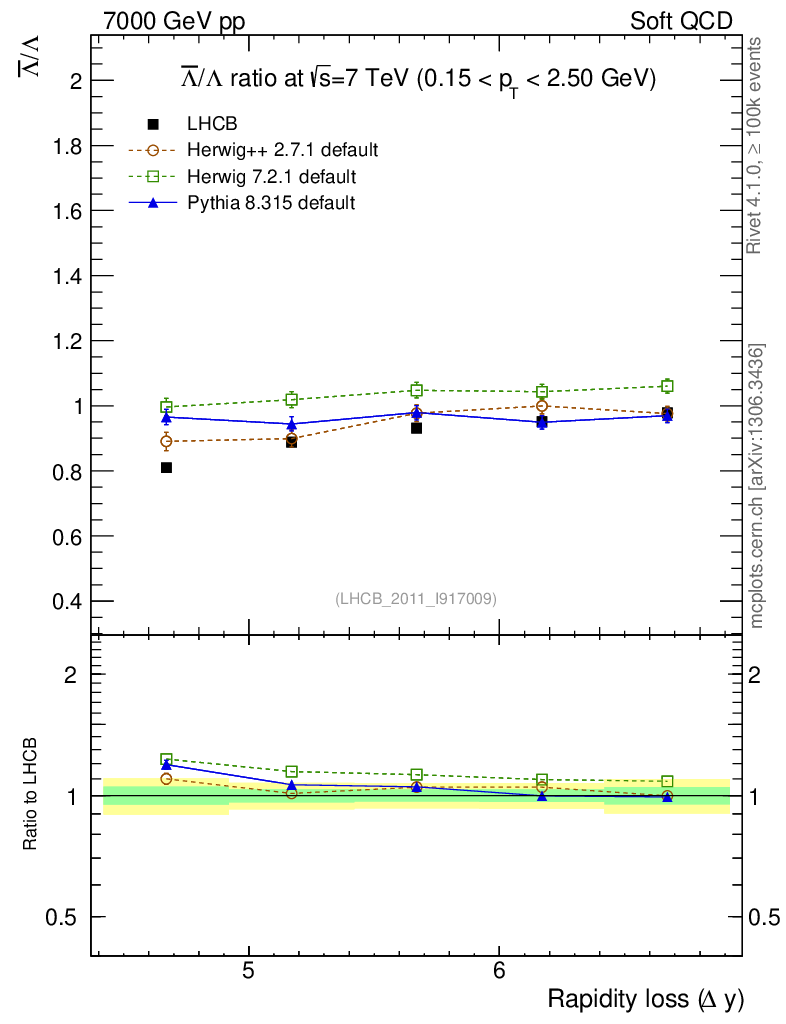 Soft QCD (inelastic) : Identified Particles : Ratios : Λbar/Λ vs |Δy|