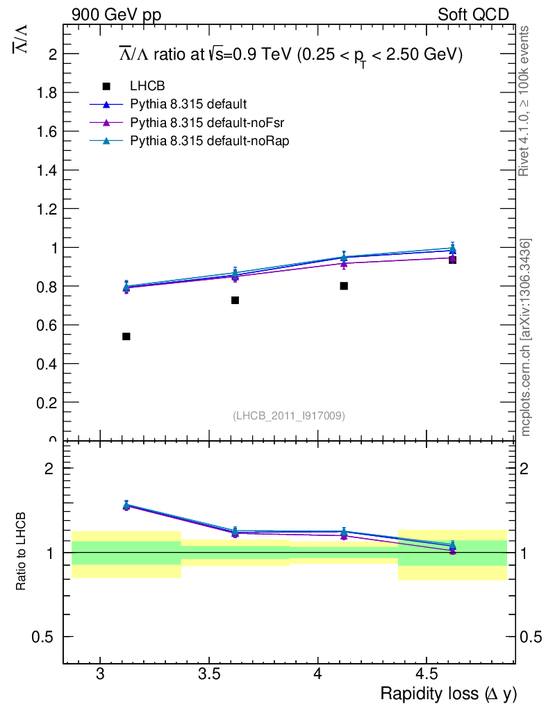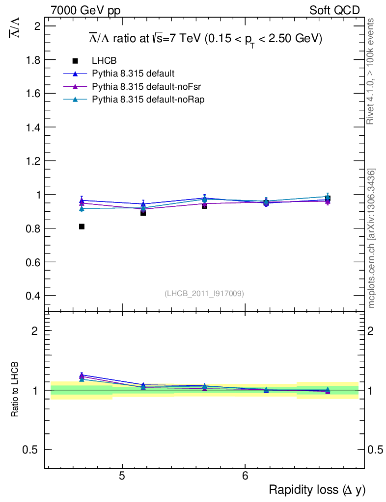 Soft QCD (inelastic) : Identified Particles : Ratios : Λbar/Λ vs |Δy|