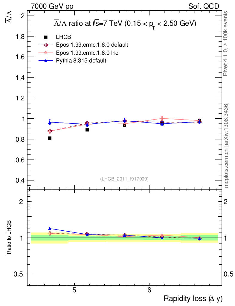 Soft QCD (inelastic) : Identified Particles : Ratios : Λbar/Λ vs |Δy|