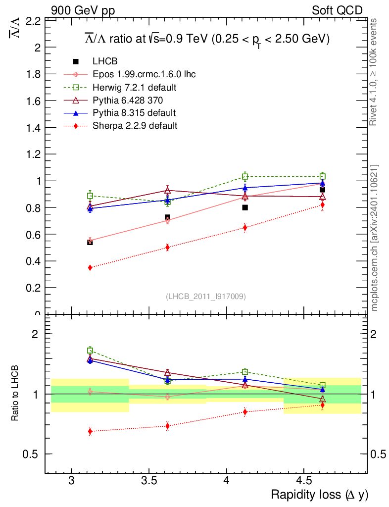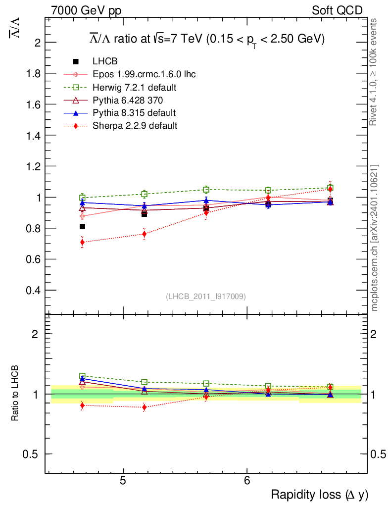Soft QCD (inelastic) : Identified Particles : Ratios : Λbar/Λ vs |Δy|