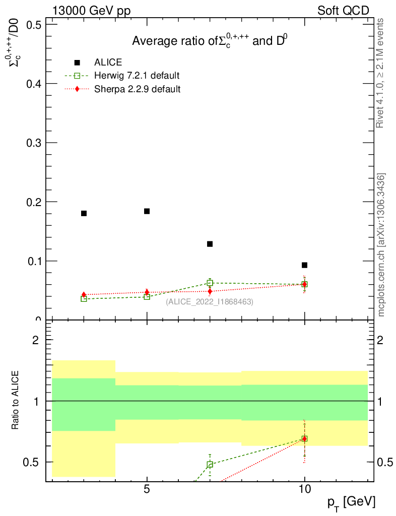 Soft QCD (inelastic) : Identified Particles : Ratios : Σc0,+,++/D0 vs pT