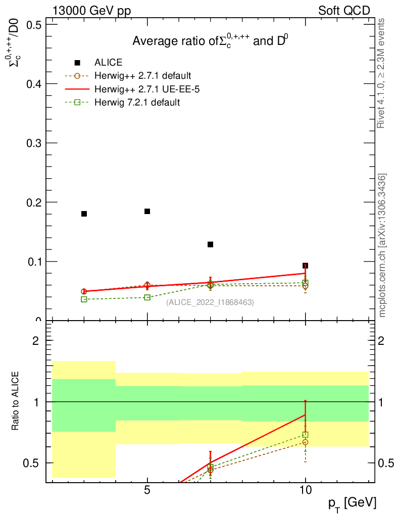 Soft QCD (inelastic) : Identified Particles : Ratios : Σc0,+,++/D0 vs pT
