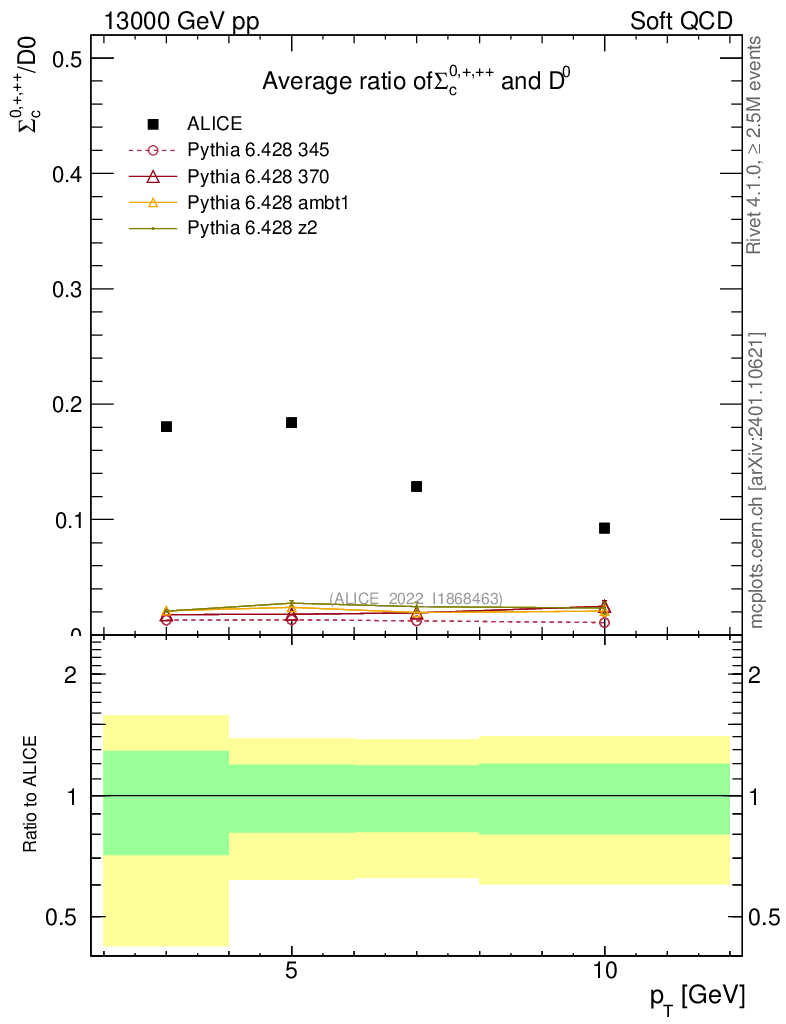 Soft QCD (inelastic) : Identified Particles : Ratios : Σc0,+,++/D0 vs pT