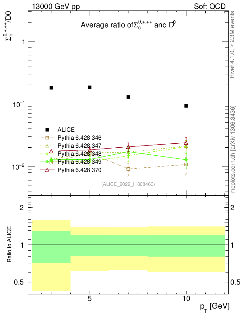 Soft QCD (inelastic) : Identified Particles : Ratios : Σc0,+,++/D0 vs pT