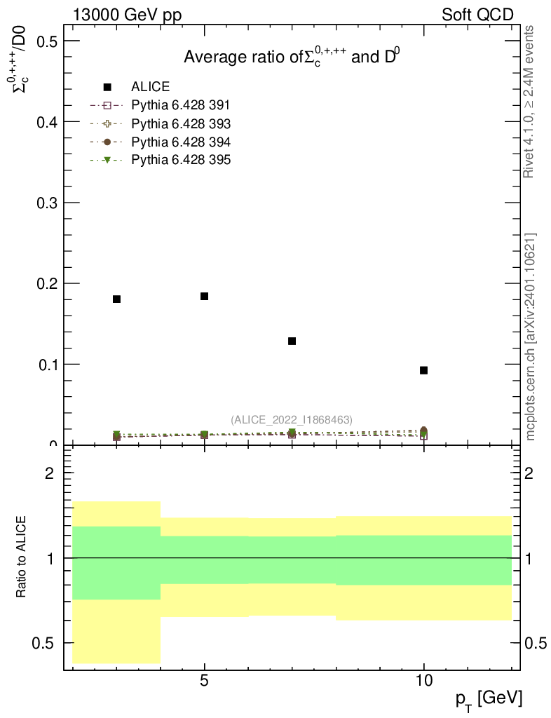 Soft QCD (inelastic) : Identified Particles : Ratios : Σc0,+,++/D0 vs pT
