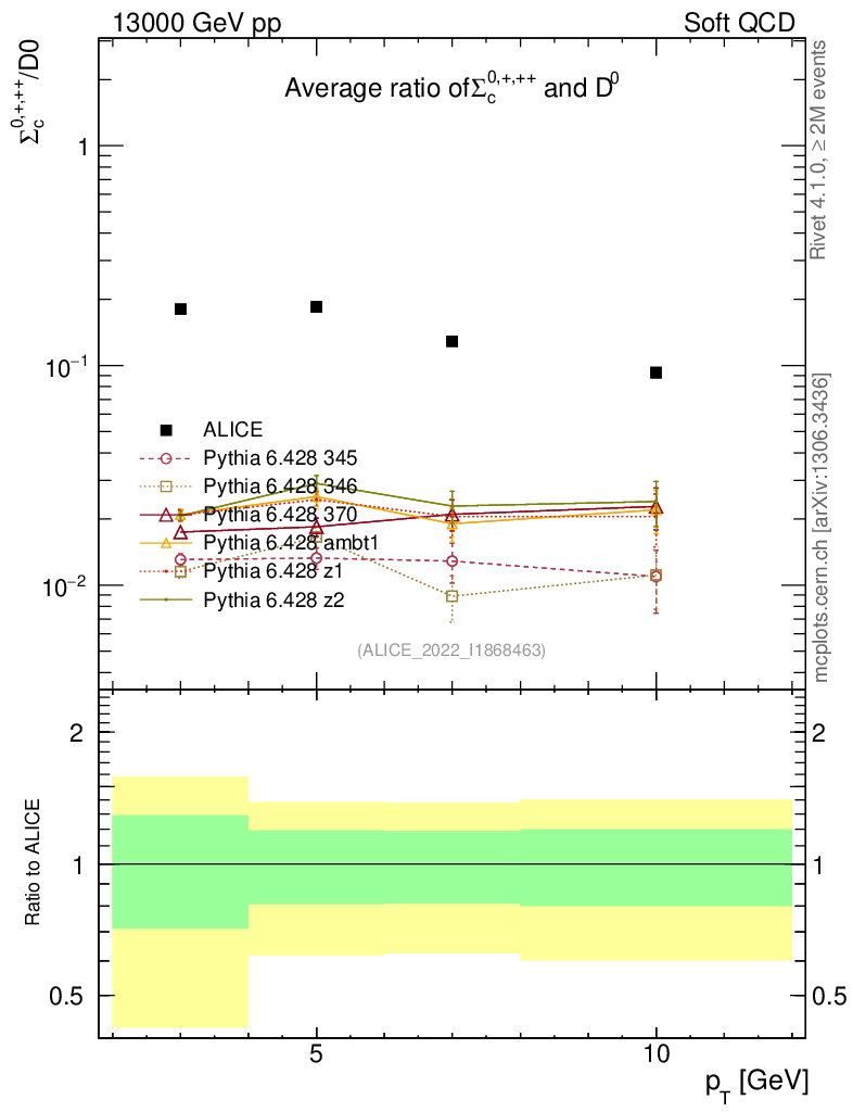 Soft QCD (inelastic) : Identified Particles : Ratios : Σc0,+,++/D0 vs pT