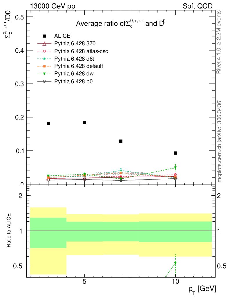 Soft QCD (inelastic) : Identified Particles : Ratios : Σc0,+,++/D0 vs pT