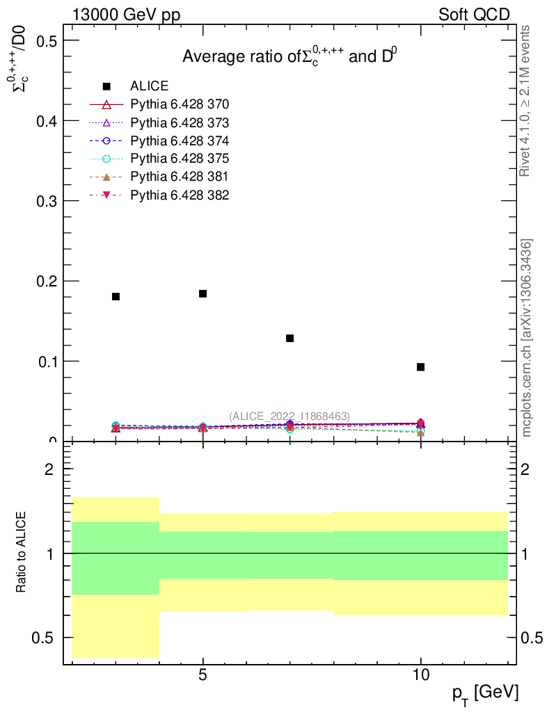 Soft QCD (inelastic) : Identified Particles : Ratios : Σc0,+,++/D0 vs pT
