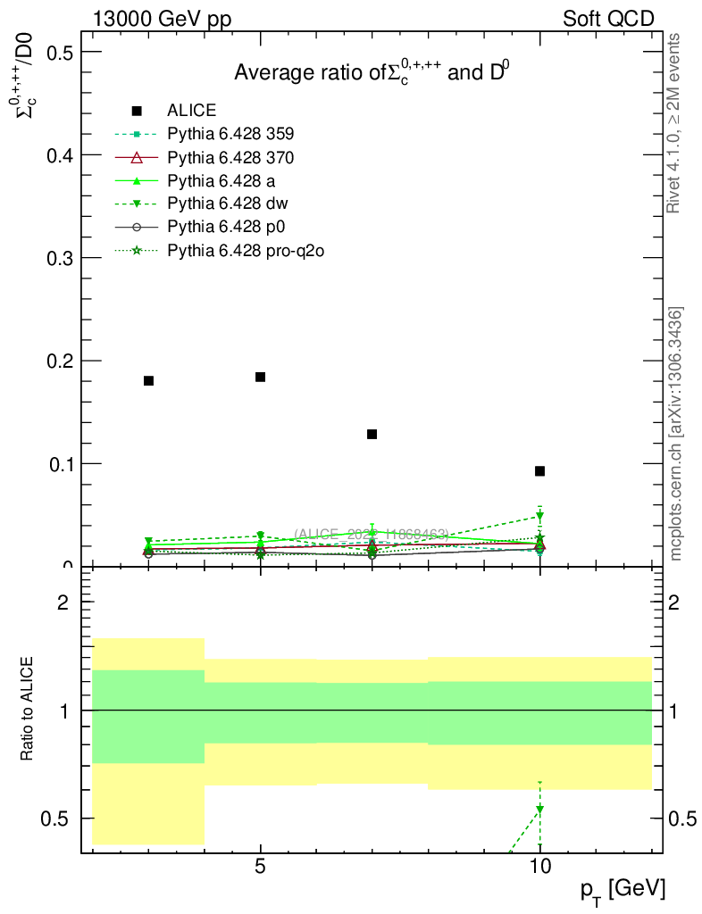 Soft QCD (inelastic) : Identified Particles : Ratios : Σc0,+,++/D0 vs pT