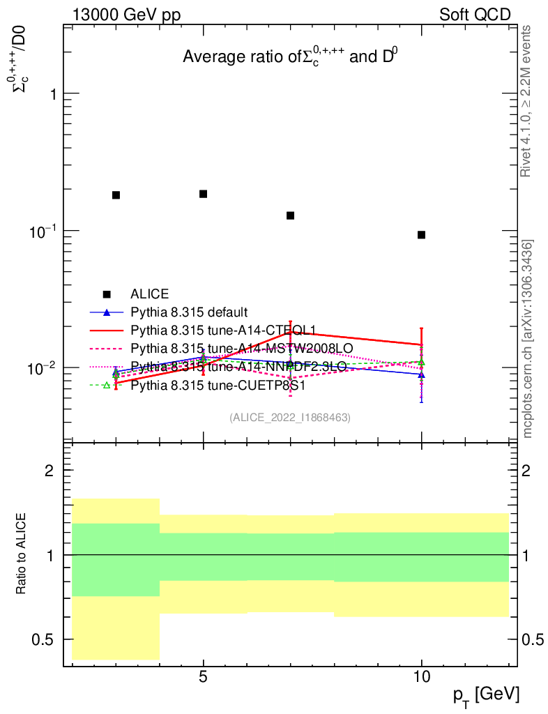 Soft QCD (inelastic) : Identified Particles : Ratios : Σc0,+,++/D0 vs pT