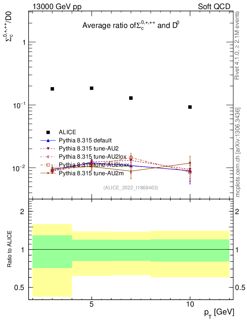 Soft QCD (inelastic) : Identified Particles : Ratios : Σc0,+,++/D0 vs pT