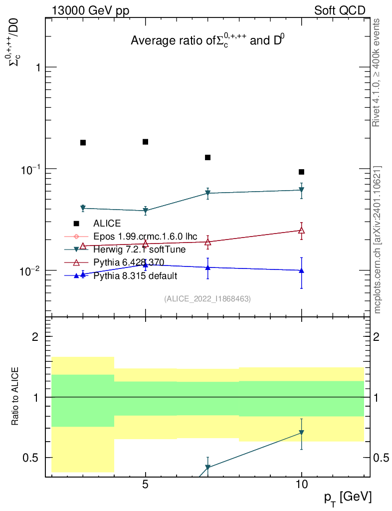 Soft QCD (inelastic) : Identified Particles : Ratios : Σc0,+,++/D0 vs pT