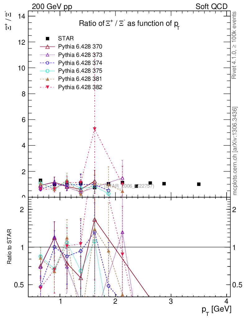 Soft QCD (inelastic) : Identified Particles : Ratios : Ξ+/Ξ- vs pT
