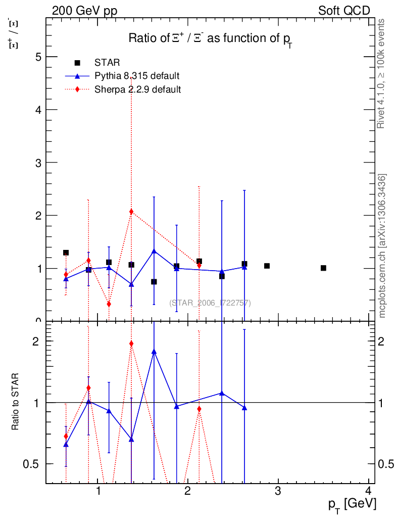 Soft QCD (inelastic) : Identified Particles : Ratios : Ξ+/Ξ- vs pT