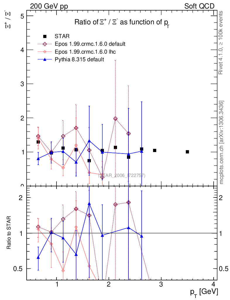 Soft QCD (inelastic) : Identified Particles : Ratios : Ξ+/Ξ- vs pT