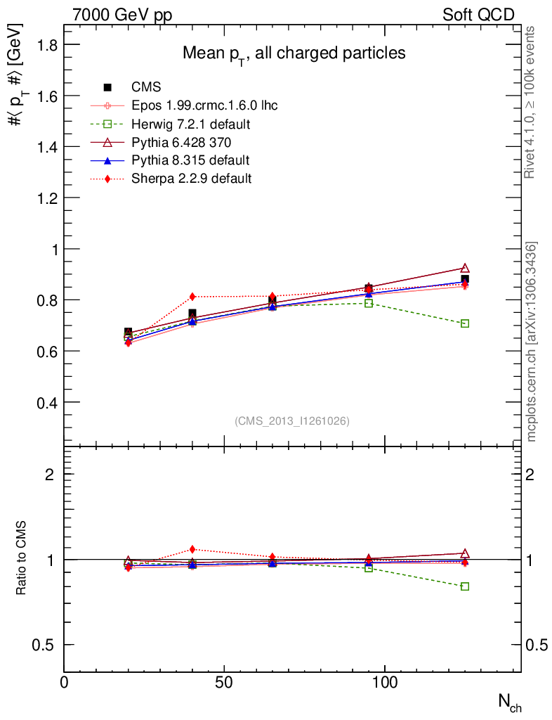 Soft QCD (inelastic) : <pT> vs Nch